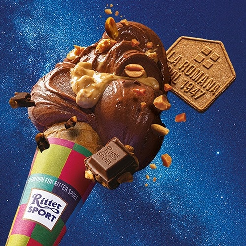 A aterizat pe Pământ o înghețată cu gust galactic: Arachidi tostate e cioccolato de la La Romana și Ritter Sport! 🥜