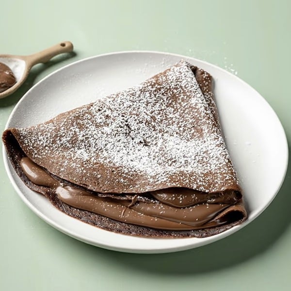 Clătite cu aluat cu cacao, umplute cu cremă de fistic și fistic crocant