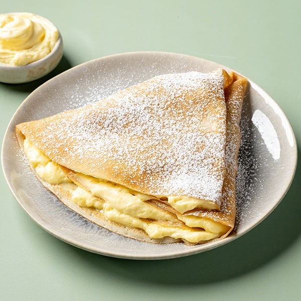 Clătitele noastre clasice sau cu cacao sunt făcute cu lapte organic proaspăt, făină organică și ouă organice, și sunt umplute cu cremă de vanilie.