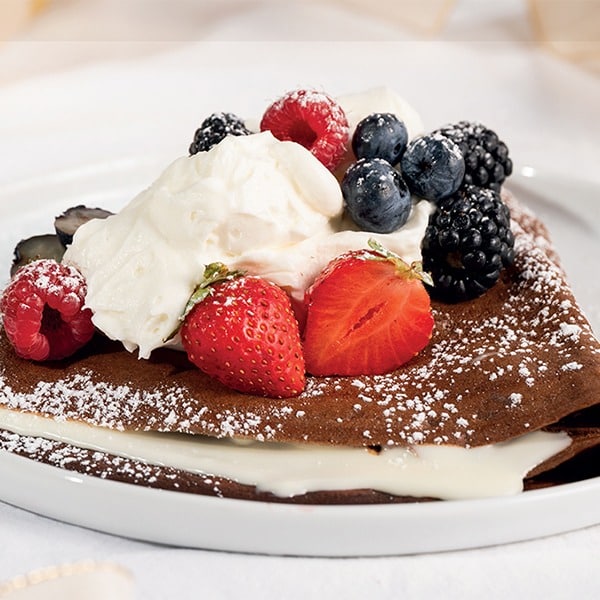 Clătitele noastre clasice sau cu cacao sunt făcute cu lapte organic proaspăt, făină organică și ouă organice, și sunt umplute cu Nutella și fructe proaspete(in functie de sezon) si servite cu frisca proaspata.
